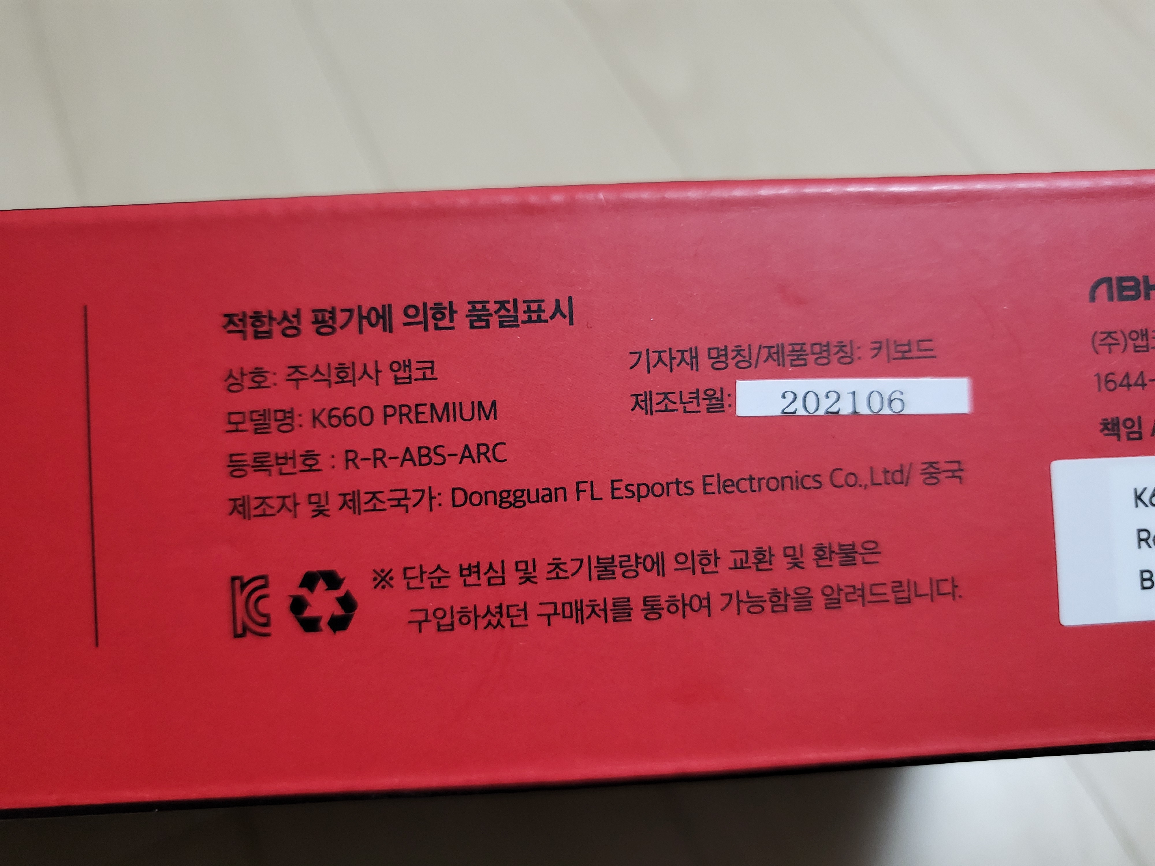우측 하단에 K660 arc 제품명도 프린팅되어있음