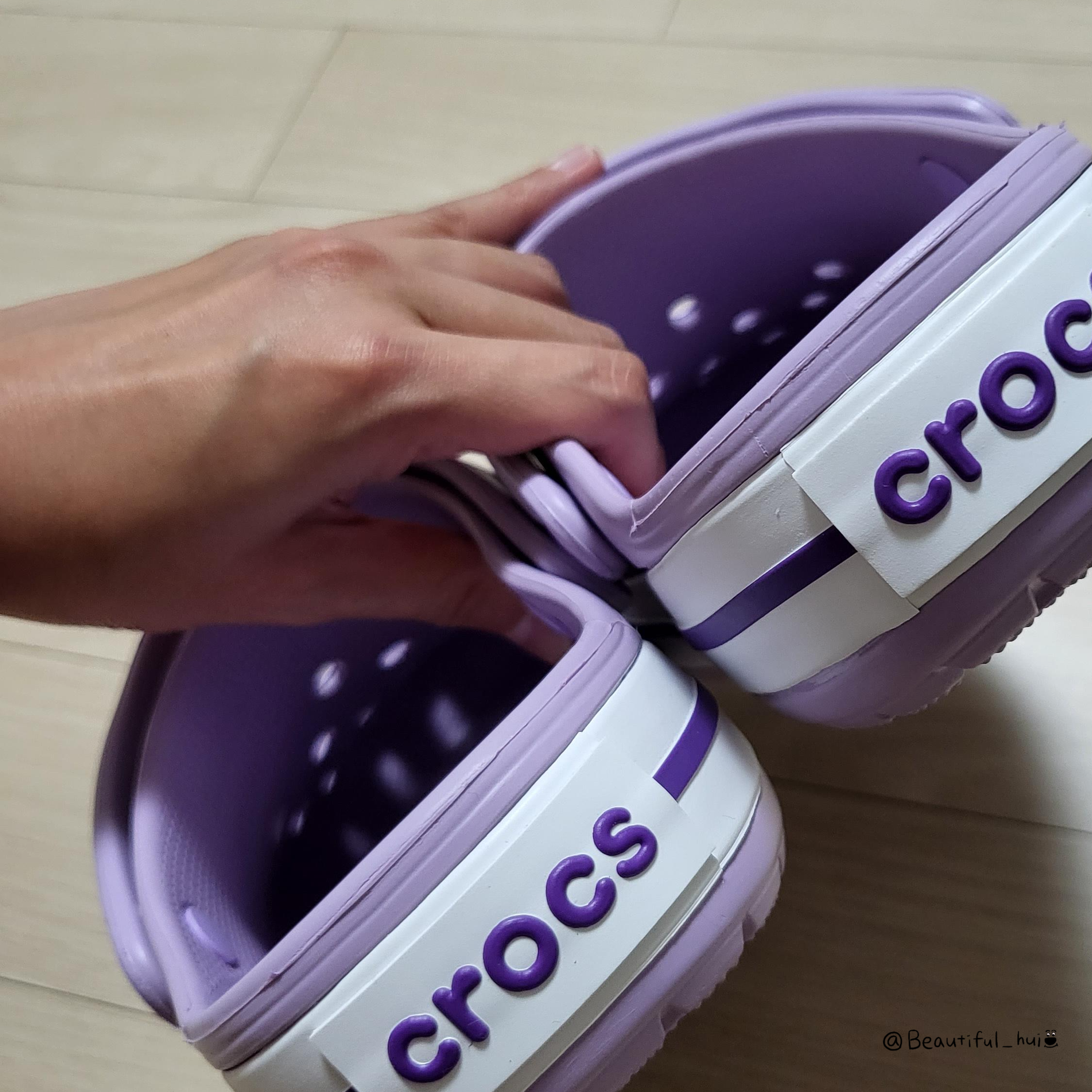 크록스 라벤더컬러라고 로고도 보라색으로 깔맞춤해놨는데,, 디게 큐티뽀작한게 장난감같이 생겼당